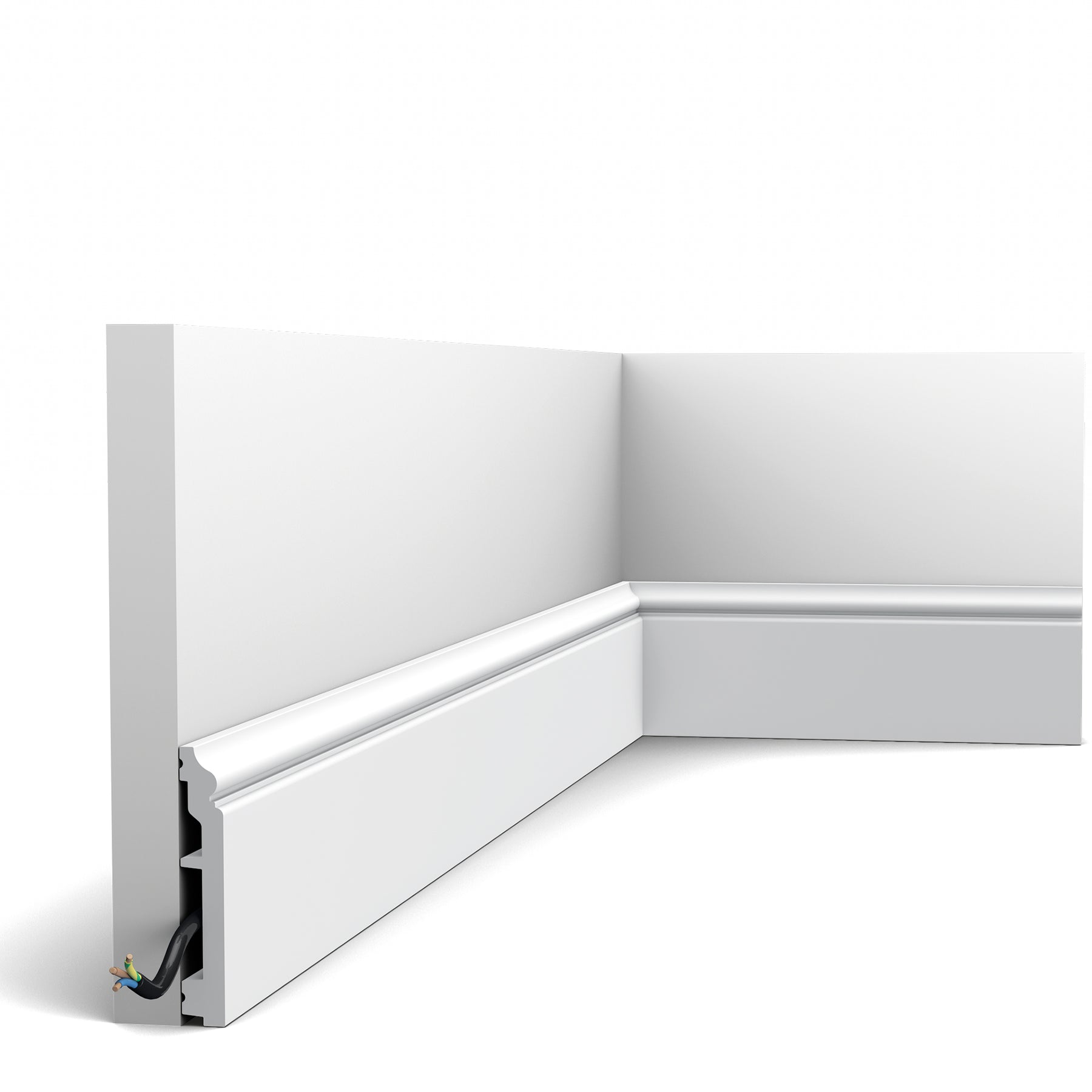SX173 Orac, Medium-sized, Plain, Regency, Lightweight Skirting Board. The SX173 lightweight skirting board is one of the latest additions to our selection and it is a fantastic choice for both old and new buildings. For a neater room, the gap at the rear side is perfect for hiding cables.